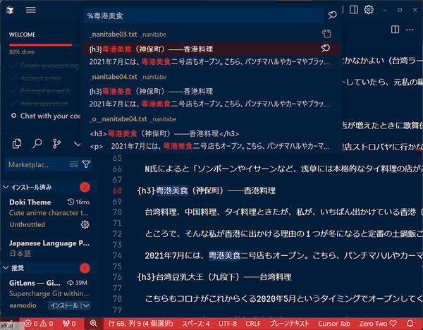 私がよく使うわかりやすい例だけを紹介したが、これだけでも、文章を書くことをなりわいとしている人なら画期的だと思うはずだ。ちなみに、CURSORのメニューなどの日本語化は「Extension」という機能から日本語パックをインストールしてやればよい。