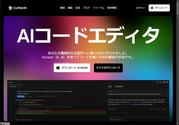 それに対して、自分の頭の中にあるものを言葉として表現して、相手に伝えるための手段として生成AIを使うことも始まっている。それをいまのところいちばん理想に近い形で実現していると見られているのが、コードエディタ「CURSOR」(カーソル、カーサー)のようだ。