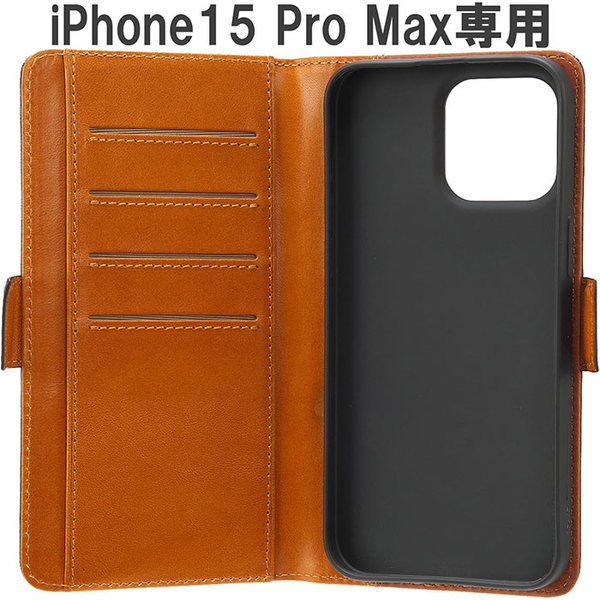 職人による手染めで仕上げられたこのケースは、使用を重ねることでカラーが深まるエイジングを楽しめます。シンプルながらも高級感のあるデザインで、iPhone 15 Pro Maxをスタイリッシュに保護します。