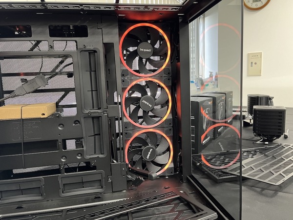 先日、テックウインドが開催した内覧会に並んだこのPCケースは、be quiet!の「Light Base 900 FX」。脚パーツを付け替えできるので「通常」「倒立」「横置き」の3つのレイアウトを選択できるのが特徴的な製品です。