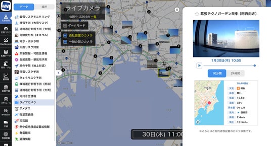 「ソラカメ」は、すでに同社のお天気アプリ「ウェザーニュース」において採用され、全国各地で、2000台以上のユーザーが設置したライブカメラを通じて、リアルタイムの気象データの提供に貢献しています。今回、新たに法人向けサービスでも採用されることで、企業や自治体はカメラの映像による気象の監視や、拠点の状況把握に活用できるようになります。
