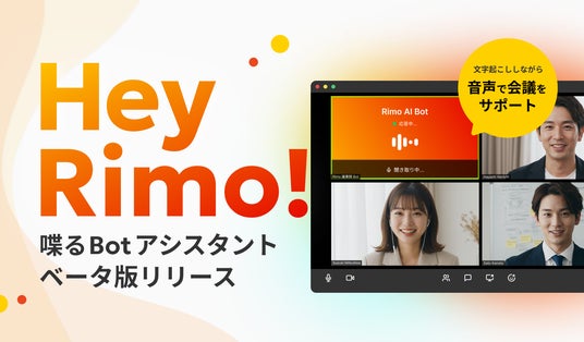 Rimo合同会社(本社:東京都渋谷区、代表:相川 直視)は、AI議事録ツール「Rimo Voice」にて、Botを介して会議中にAIと音声でやりとりができる新機能『喋るBotアシスタント』β版の提供を開始しました。また同日より、より良いビジネス支援の実現に向けて、『喋るBotアシスタント』の可能性を共に探求していただけるパートナー企業の募集を開始しました。
