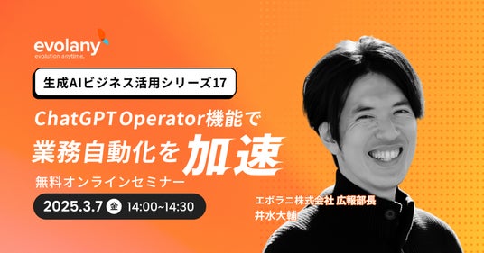 2025年3月7日(金)14:00~14:30【生成AIビジネス活用シリーズ17】 ChatGPT Operator機能で業務自動化を加速!