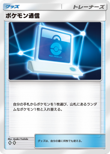 これらのポケモンに加え、必須のサポートカードとして、アカギとポケモン通信を2枚ずつ組み入れます。