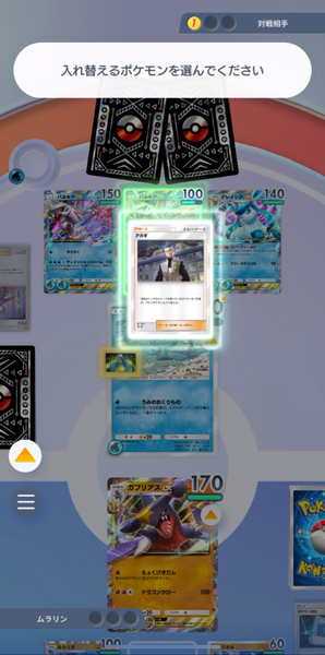 このデッキでの戦い方は、基本的に相手ベンチに控えている準備が整う前のexポケモンやメインアタッカーになるポケモンに「ちょくげきだん」で攻撃していき、ボーダーを下回ったらアカギでバトル場に引き出してドラゴンクローで仕留めていきます。