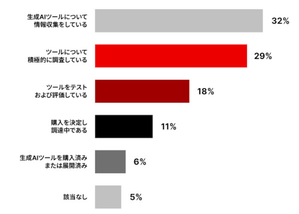 ・約3分の2の回答者が、生成AIツールを導入済みか、それに近い段階