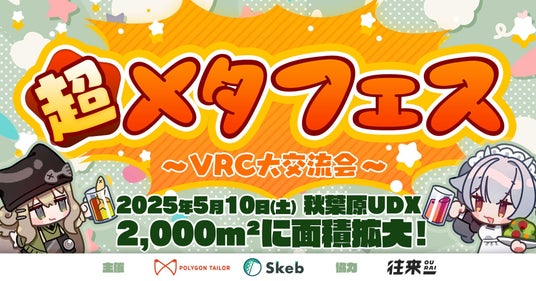企業のメタバース進出をサポートする株式会社ポリゴンテーラーコンサルティング(本社:東京都港区、代表取締役:喜田一成)およびコミッションプラットフォーム「Skeb」(スケブ)を運営する株式会社スケブ(本社:東京都港区、代表取締役:喜田一成)の両社は、5月10日(土)に、VRユーザー、VRクリエイター、VR関連企業の三者間交流を目的とした『超メタフェス ~VRC大交流会~』を秋葉原UDX 2F AKIBA SQUAREおよび4F UDX Galleryにて開催させていただく運びとなりましたのでお知らせいたします。