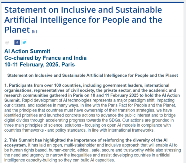 さらに、サミットの議長国であった仏マクロン大統領は「欧州は規則を簡素化し、より事業を行いやすくし、米国と歩調を合わせる必要がある」と発言し、EU AI法についての事実上の批判を行い、足並みの乱れが顕著になってきました。