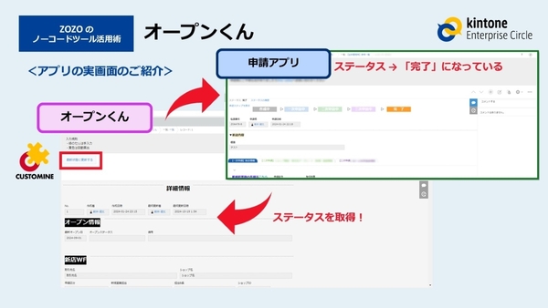もうひとつ披露されたkintoneアプリは、新店の契約進捗を管理する「オープンくん」だ。バックオフィスから営業へとkintoneの活用領域と市民開発を広げる、同社にとって新たな挑戦となるアプリである。