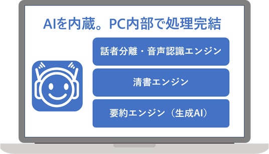 情報漏洩リスクゼロ。最新の生成AIを搭載した完全オフラインAI議事録作成ソフト発売。