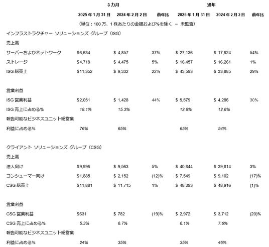 米国リリース原文:https://www.dell.com/en-us/dt/corporate/newsroom/announcements/detailpage.press-releases~usa~2025~02~dell-technologies-delivers-fourth-quarter-and-full-year-fiscal-2025-financial-results.htm#/filter-on/Country:en-us