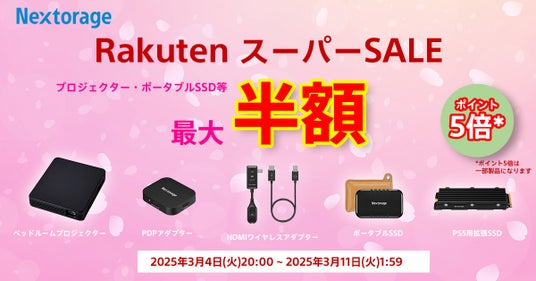 Nextorage株式会社(ネクストレージ株式会社、代表取締役:本多 克行、神奈川県川崎市)は、2025年3月4日(火)より開催される楽天スーパーセールに参加することをお知らせいたします。