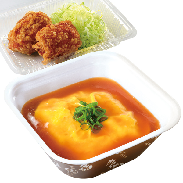 ▲【テイクアウトメニュー】天津飯とにんにく醤油からあげセット弁当(餡は別添えでの提供・853円)