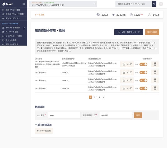 電子チケットteket(テケト)、チケットノルマ管理が10分で完了。販売実績をURLごとに自動追跡できる新機能が登場