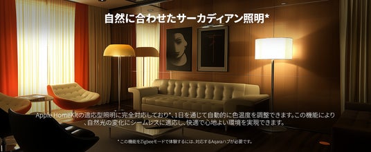 また、Apple HomeKitの適応型照明に完全対応しており、1日を通じて自動的に色温度を調整できます。この機能により、自然光の変化にシームレスに適応し、快適で心地よい環境を実現できます。