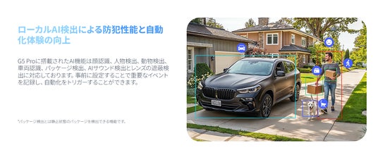 内蔵NPUを搭載したG5 Proは、顔認識、車両認識、さらには人物、滞留、ペット、荷物、障害物を検出することができます。これらのAI検出はすべてローカルで行われるため、同時に機能できるだけではなく、インターネット接続が切断されている場合でも、重要なイベントを記録し、自動化をトリガーすることができます。