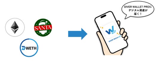 通常のお買い物で貯まるポイントと同じく、該当の商品を購入する事で、自己管理型ウォレット「ダイバーウォレットプロ」にデジタル資産が届きます。