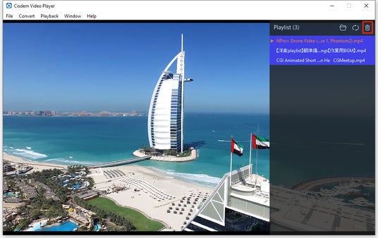「Ctrl+A」キーで再生リストにおけるファイルをすべて選択し、それから右上隅のゴミ箱アイコンをクリックして一括削除できます。
