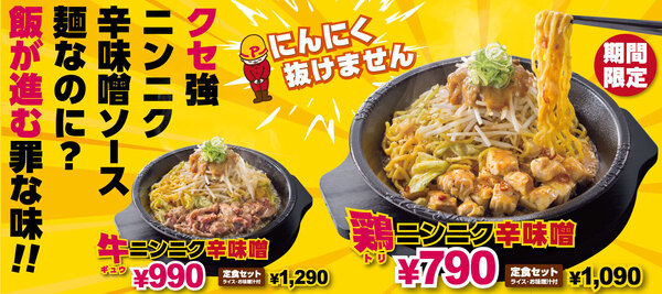 ペッパーランチは、「にんにく辛味噌フェア」を3月12日から4月22日まで全国の店舗で開催。にんにくと辛味噌のパンチが効いた期間限定の新メニュー「牛ニンニク辛味噌」と「鶏ニンニク辛味噌」が登場します。
