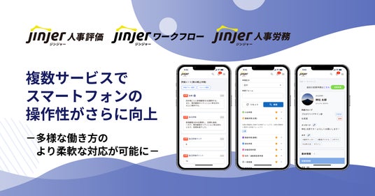 クラウド型人事労務システム「ジンジャー」を提供しているjinjer株式会社(本社:東京都新宿区、代表取締役社長:桑内 孝志)は、「ジンジャー」の複数サービスにおいて、スマートフォンの操作性を向上しました。これにより「ジンジャー人事評価」、「ジンジャーワークフロー」、「ジンジャー人事労務」で、スマートフォンを活用した人事業務のデジタル化がさらに進み、多様な働き方への柔軟な対応が可能になります。