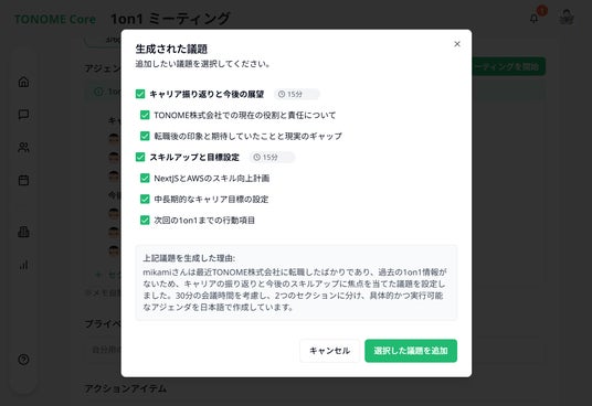 完全無料で始められる!AIメンター機能搭載の次世代1on1マネジメントプラットフォーム「TONOME Core」をリリース