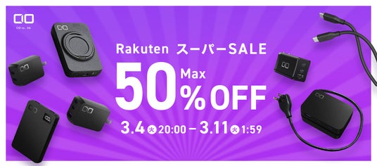 小型・高出力のモバイルバッテリー「SMARTCOBY」シリーズや、小型のGaN急速充電器「NovaPort」シリーズなどを展開する株式会社CIOは、「楽天スーパーセール」に、売れ筋製品や新商品を最大50%OFFにて販売いたします。(※1)