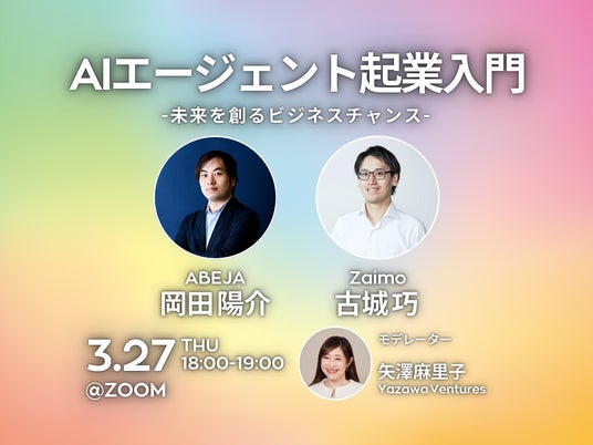 本イベントでは、実際にAIエージェントの研究開発、実装の先駆けである株式会社ABEJA岡田 陽介氏、そして先月資金調達を発表したZaimo株式会社古城 巧氏をお招きして、AIエージェント×スタートアップの現在地や今後の予測と、成功を収めるためのヒントを議論していきます。