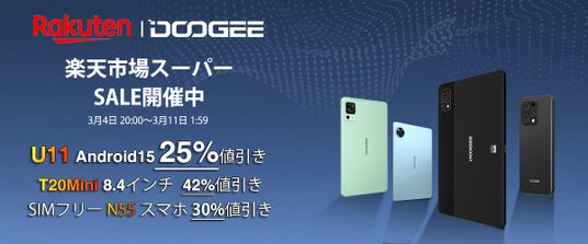 楽天DOOGEEストアは本日20時より、前回大好評を博した楽天市場スーパーSALEの新たなフェーズを開始します。今回のSALEでは、タブレット、スマートフォン、そして頑丈なスマホなど、幅広いラインナップを驚きの価格でご提供。人気商品「DOOGEE T20MINI」は42%の大幅値引きで販売開始!数量限定のため、機会をお見逃しなく!