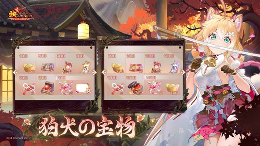 『狛犬の宝物』『ショップ無料更新回数増加』『月のギフト』『放置経験値増加』『限定累計消費』など、盛りだくさんのイベントをご用意しております!
