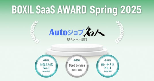 ユーザックシステム株式会社(本社:大阪市、代表取締役社長:小ノ島 尚博、以下当社)が提供するAutoジョブ名人は、スマートキャンプ株式会社(以下「スマートキャンプ」)が主催する「BOXIL SaaS AWARD Spring 2025」のRPAツール部門で「Good Service」「使いやすさNo.1」「お役立ち度No.1」に選出されました。Autoジョブ名人は、「Good Service」において「BOXIL SaaS AWARD Spring 2024」から5期連続受賞となります。