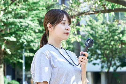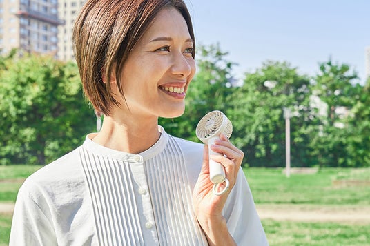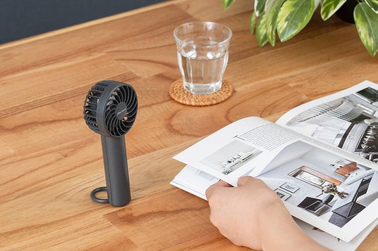 グリップを細く本体をコンパクトに設計し、握りやすく持ち運びやすいハンディファン。小ぶりなサイズ感ながら7枚羽根を採用し、大風量を実現。