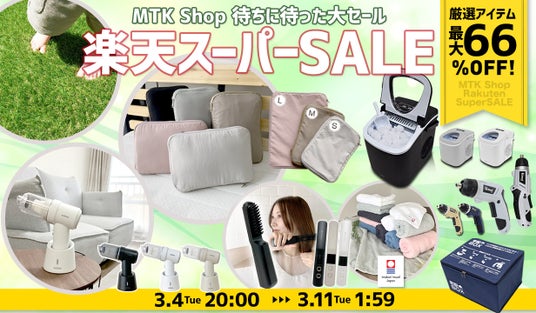 生活を豊かに、便利に、そして楽しくするアイテムの企画・開発・販売を手掛ける三金商事株式会社(本社:大分県大分市、代表取締役社長:田中 新一)が運営する、MTK SHOP 楽天市場店は、楽天スーパーSALEにて、今年最初のビッグセールを開催。