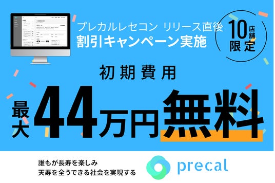【初期費用最大44万円無料!】プレカルレセコン リリース直後3か月導入割引キャンペーン実施!!
