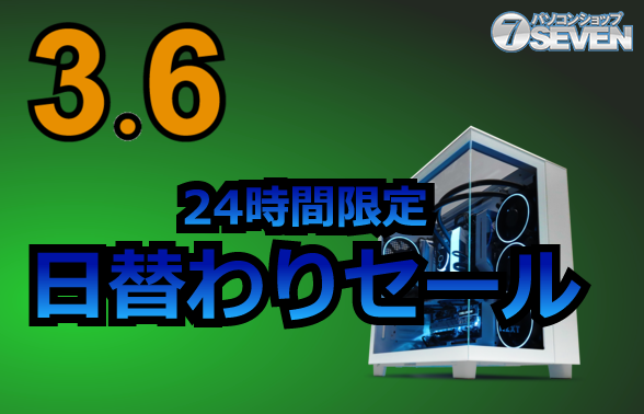 セブンアールジャパンが運営するパソコンショップSEVENは、3月6日限定で、大規模な24時間セールを開催する。最新のゲーミングPCやデスクトップPCが最大で51,000円の値下げになるという。セールは3月6日0:00から23:59まで実施され、さらに送料無料の特典が付く。この機会に新しいPCをお得に手に入れる絶好のチャンスだ。