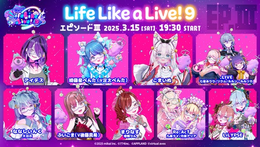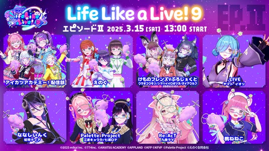 また、2025年3月8日(土)にLife Like a Live!9イベント直前生配信を公式YouTubeにて配信予定です。