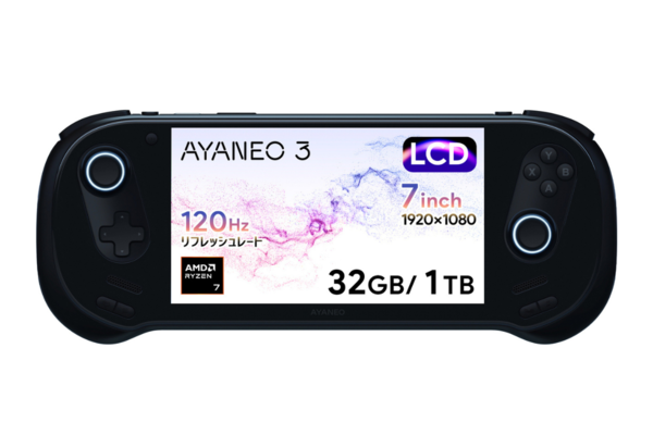 CPUはRyzen AI 9 HX 370とRyzen 7 8840Uから選択可能で、ディスプレーは7型フルHD(1920×1080)でLCD/最大500nit/120HzおよびOLED/最大800nit/144Hzのハイリフレッシュレートとなっている。そのほかメモリーは16GB/32GB、ストレージが1TB/2TB/4TBという構成。