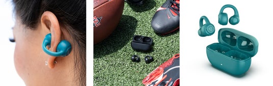 Flexは、JLabの最新技術を搭載した1万円以下のイヤーカフ型イヤホンです。12mmの大口径ドライバーとオープンイヤー独自のサウンドによって新たなリスニング体験を演出。イヤーカフ型を採用することで、長時間の装着でも快適性を損なわず、安心・安全に使用することが可能です。また、Bluetoothマルチポイントにより、PCでのWEB会議中、同時接続されているスマートフォンへの着信にサッと切り替えることができ、ノイズキャンセリングマイクがクリアな通話を実現します。忙しい現代人に合わせて作られたFlexは、普段使い・スポーツ用途問わず、様々なシーンで活躍する1台です。