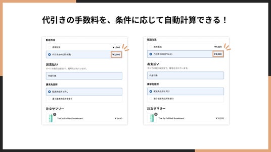■ 代引きの手数料を、条件に応じて自動計算できる!