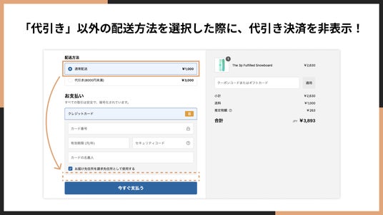 「「代引き」以外の配送方法を選択した際に、代引き決済を非表示!」
