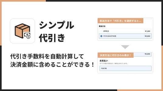 「シンプル代引き|お手軽代引き手数料自動計算アプリ」は、Shopifyストアで代引き手数料の自動計算を行い、決済金額に含めることができるアプリです。様々な条件に応じて、代引き手数料を自動計算することができます。