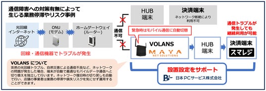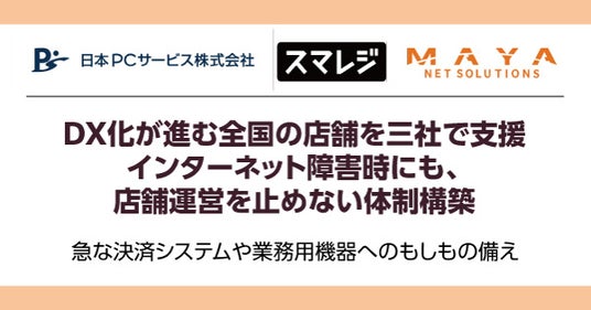 デジタル機器の設定・トラブル解決を行う日本PCサービス株式会社(本社:大阪府吹田市、代表取締役社長:家喜 信行、証券コード:6025、以下「当社」)は、株式会社スマレジ(本社:大阪府大阪市、代表取締役社長:宮崎 龍平、以下「スマレジ」)と株式会社MAYAネットソリューションズ(本社:東京都新宿区、代表取締役社長:浅野 隆司、以下:「MAYAネットソリューションズ」) と連携し、 2025年3月5日(水) より、「ネットあんしんBOX」のサポートを開始したことを報告します。これにより、スマレジを利用している店舗でネットワークトラブル時も、通信ができる環境を整え、決済端末や業務用機器の稼働を止めることなく機会損失を防ぐことができるようになります。