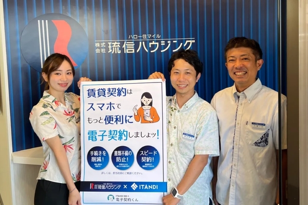 そして、沖縄県内でいちはやく賃貸の手続きを完全電子化したのが琉信ハウジングである。イタンジのサービスを導入し、顧客管理や見込み客へのアプローチといった「賃貸仲介業務」、入居申込から賃貸借契約までの「賃貸管理業務」を電子化。結果、業務効率や物件の申込率を向上させ、担当者を3分の2にした状態でも売上を維持しているという。