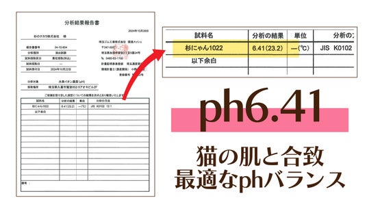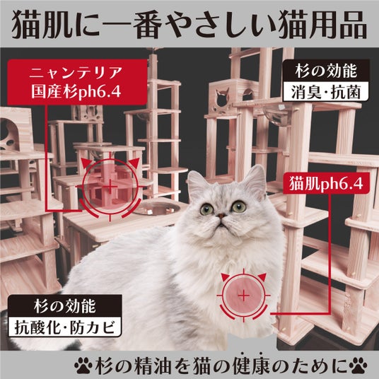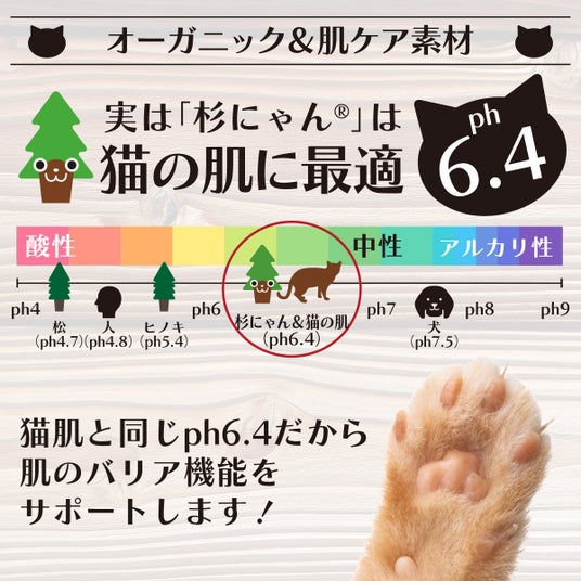【精油分をたっぷり含有した天然乾燥の「杉」は、しっかりと猫肌と同じph6.4のバランスを示します】