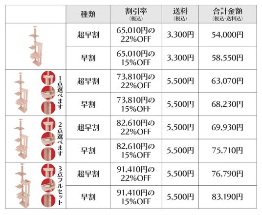 今回デビューする「ニャンテリア(R) ドリーム」は、これまでのニャンテリア(R)シリーズと異なり、猫のシルエットをふんだんに取り入れた、『至るところに猫だらけ』のデザインで、猫さんが駆け上りやすい足場や、あご乗せできるフェンス、くるんと丸まれる半円カプセルなどのオプションもご用意。