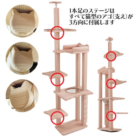 ・・・その思いを胸に、猫ちゃんの健康を守り、居心地を極める猫タワーを約1万台製造して参りました。phバランスも、木肌のやわらかさも、猫肌と抜群にフィットし、ずっと使える耐久性、部分交換も可能、カスタマイズも可能、という究極の猫タワーを追求し続けております。