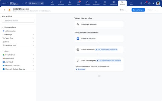Zoom Workflow Automation は、IT 管理者が Jira と統合したワークフローを構築することを可能にします