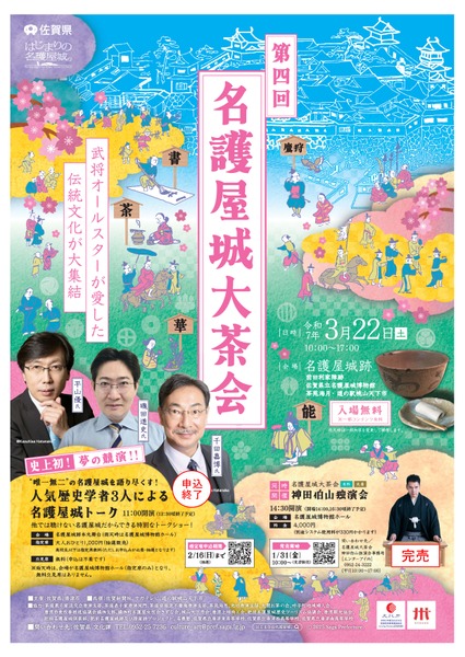 豊臣秀吉や徳川家康など、全国から150を超える武将たちが参陣し、人々の交流を通じて茶の湯や能などの華やかな文化が花開いた肥前名護屋城。その歴史ロマンあふれる城跡を舞台に、第4回目となる「名護屋城大茶会」が3月22日(土)に開催されます。