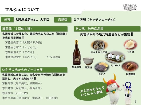 地元唐津の名物をはじめ、秀吉ゆかりのグルメや戦国鍋も登場。ひこにゃん、唐ワンくんも参陣。