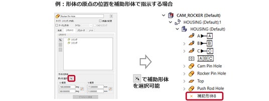 ジョイント位置や原点位置の指示に補助形体が利用可能に