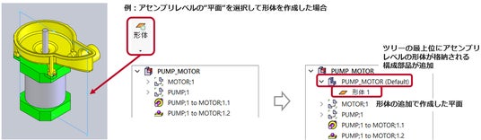 アセンブリレベルの形体をモデルに追加できるようになり、設定工数を削減可能に
